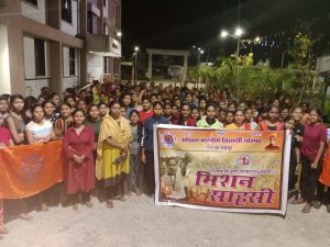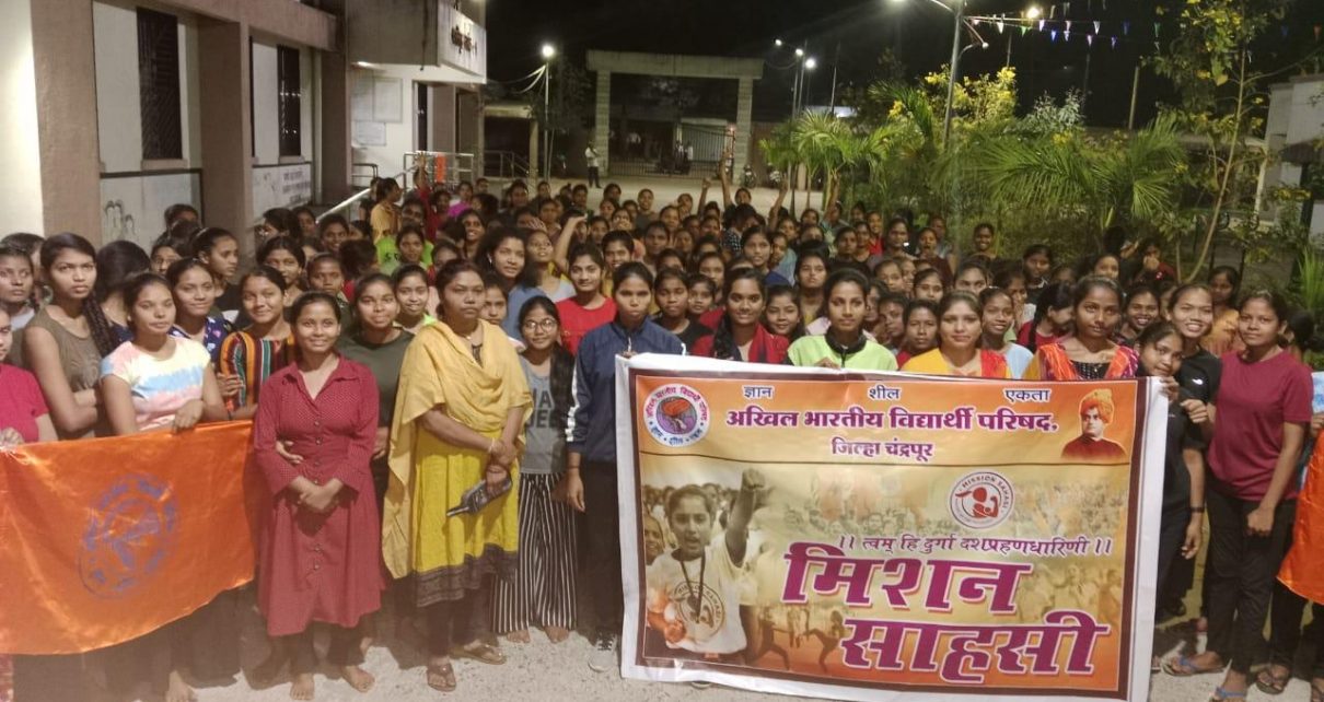 अखिल भारतीय विद्यार्थी परिषद चंद्रपूर महानगर व्दारे शासकीय आदिवासी विद्यार्थिनी वसतिगृह (चंद्रपूर) येथील विद्यार्थिनींना आभविपच्या ‘मिशन साहसी’ आयामा अंतर्गत स्वसंरक्षणाचे धडे देण्यात आले. अभाविप मिशन साहसी आयाम हे संपूर्ण देशभरात राबविल्या जाते आणि आतापर्यंत संपूर्ण देशात ५२ लाख विद्यार्थिनींना स्वरक्षणाचे धडे दिल्या गेले आहेत. विद्यार्थींनीना वेळप्रसंगी स्वरक्षण करता यावे व महीला सशक्तीकरण हा या आयामाचा उद्देश आहे. या कार्यक्रमाप्रसंगी विद्यार्थिनींनी ‘हम फुल भी है, चिंगारी भी है, हम भारत की नारी है’ असे उत्साहात घोषणा दिल्या. या कार्यक्रमाला अभाविप पश्चिम क्षेत्रीय सह संघटन मंत्री श्री. राय सिंह यांची प्रमुख उपस्थिती होती. अभाविप विदर्भ प्रांत मंत्री शक्ती केराम, या कार्यक्रमाच्या प्रशिक्षक रितू पानघाटे, माधुरी खरवडे, अंजली मोहंती, वसतिगृह अधीक्षक शुभांगी हमंद आणि एस. एम. मडावी, चंद्रपूर विभाग संयोजक वैदेही मुडपल्लीवार, जिल्हा संयोजक शैलेश दिंडेवार, जिल्हा सहसंयोजक जयेश भडगरे, पियूष बनकर, सृष्टी डवरे, भुषण डफ, अमोल मदने, चंद्रपूर नगर विस्तारक ऋतिक कनोजीया यांच्यासह बहुसंख्येने अभाविपचे कार्यकर्ते व वसतिगृहात राहणाऱ्या विद्यार्थीनी उपस्थित होते.