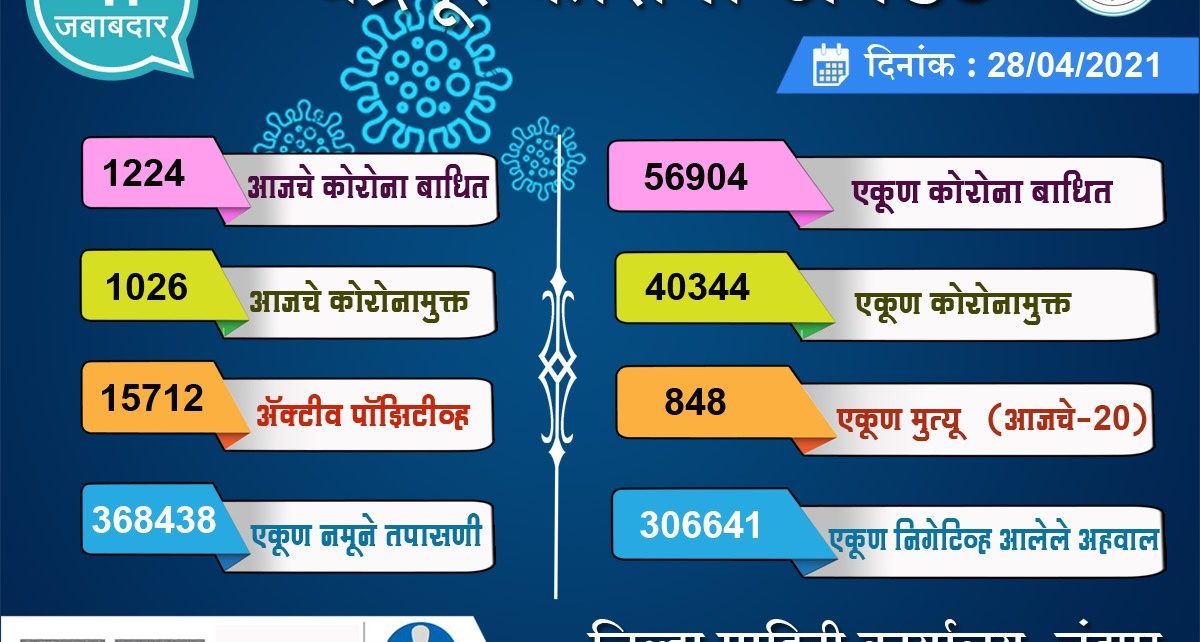 भद्रावती शहर ५ जण ब्रम्हपुरी तालुका ३ जण गडचांदूर ३ जण जानाळात दोघे, बेंबाळ येथे एक नागरिक पॉझिटीव्ह *आतापर्यत ८० कोरोनातून बरे* *६८ बाधितांवर उपचार सुरू* चंद्रपूर जिल्ह्यामध्ये गुरुवार दिनांक ९ जुलै रोजी आरोग्य विभागाकडून आलेल्या प्राथमिक माहितीनुसार एकाच दिवशी १४ बाधित पुढे आले आहेत. कालपर्यंत जिल्ह्यामध्ये १३४ पॉझिटीव्ह आढळले होते. आज त्यामध्ये १४ […]