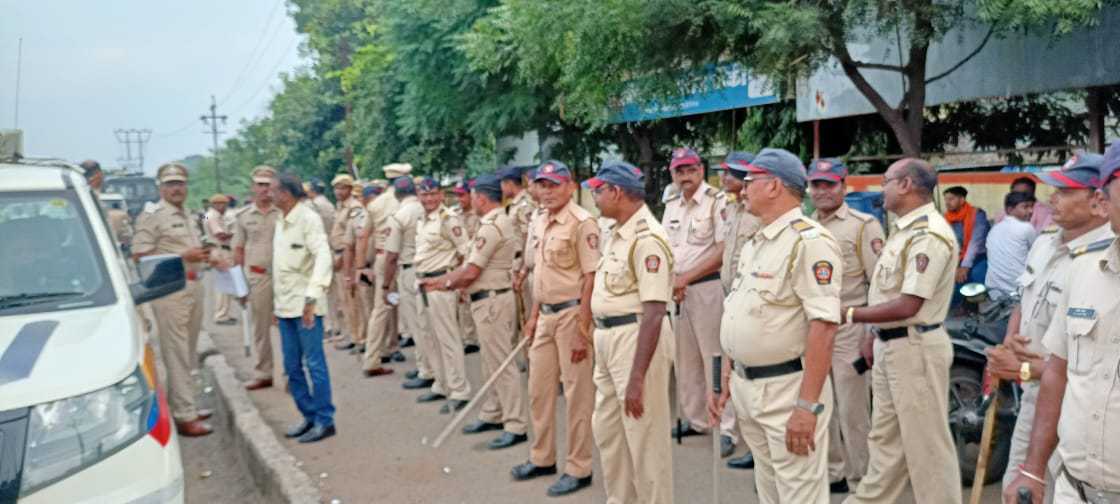 चंद्रपुर :- आज दिनांक 1 सप्टेंबर रोजी सायंकाळी 6 ते 7 वाजेपर्यंत रामनगर पोलीस स्टेशन अंतर्गत पोलीस अधीक्षक अरविंद साळवे यांच्या उपस्थितीत आगामी गणेशोत्सव सणानिमित्त शक्तिप्रदर्शन रोड मार्च काढण्यात आला. मार्च बंगाली कॅम्प येथील शास्त्रीनगर पोलीस चौकी येथून सुरुवात करत सुभाष चंद्र बोस चौक ते नेहरूनगर फाटा नंतर परत बंगाली कॅम्प येथील अजय सरकारचे घराकडील रस्त्याकडून शिस्तबद्ध पद्धतीने परत आले. गणेशोत्सवाच्या पार्श्वभूमीवर शहरात कायदा व सुव्यवस्था अबाधित राहण्याकरिता पोलीस बांधवांची उपस्थिती व गुन्हेगारी प्रवृत्तीवर पोलिसांचा वचक असावा तसेच उत्सव काळात परिसरात काही अनुचित घटना घडू नये या करिता पोलीस मार्च चे आयोजन करण्यात आले. रूट मार्च दरम्यान उपविभागीय पोलीस अधिकारी सुनील नंदनवार, रामनगर पोलीस स्टेशनचे पोलीस निरीक्षक राजेश मुळे, सह सहाय्यक पोलीस निरीक्षक हर्षल एकरे, संदीप धोबे, योगेंद्र यादव, योगेश हिवसे व पोलीस उपनिरीक्षक चंद्रकांत लांबट, मधुकर समलवार विनोद बुरले राजू बलगेवार, कमलेश देवगडे, रमेश दिवटे तसेच इतर अधिकारी व 56 पोलीस अमलदार, 36 सैनिक व एस आर पी एफ ग्रुपचे 1 अधिकारी व 8 अंमलदारासह रूट मार्च करण्यात आले.