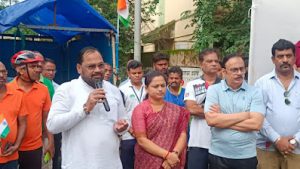 स्वांतत्र्याच्या अमृत महोत्सवानिमित्त हर घर तिरंगा या उप्रकमाबाबत जनजागृती करण्यासाठी क्रिडा अधिकारी कार्यालय, जिल्हा परिषद शिक्षण विभाग आणि नेहरु युवा केंद्र या संयुक्त विद्यमाने आज शुक्रवारी सायकल रॅलीचे आयोजन करण्यात आले होते. याप्रसंगी ते बोलत होते. यावेळी वरोरा विधानसभा क्षेत्राच्या आमदार प्रतिभा धानोरकर, जिल्हाधिकारी अजय गुल्हाणे, जिल्हा क्रिडा अधिकारी अविनाश पुंड, आदिंची प्रमुख उपस्थिती होती. पूढे बोलतांना आ. जोरगेवार म्हणाले कि तिरंगा हा देशाची शान आहे. संपुर्ण देश वासियांना तिरंग्या प्रती आदर आहे. त्यामुळे केद्र सरकारने यंदा हर घर तिरंगा हा उपक्रम हाती घेतला आहे. या उपक्रमाला चंद्रपूरातही उत्स्फुर्त प्रतिसाद मिळत आहे. १५ ऑगस्टला चंद्रपूरातील प्रत्येक घरी तिरंगा लागेल असा विश्वास त्यांनी यावेळी बोलुन दाखविला. राज्यातील प्रत्येक तालुक्यात 75 ते 100 फुट उंचीचा राष्ट्रध्वज फडकविण्याची यावा अशी भुमिका राज्य सरकारणे घेतली आहे. आपणही यासाठी आपल्या विधानसभा क्षेत्रात येणा-या घुग्घुस आणि चंद्रपूर येथे सदर उंचीचा राष्ट्रध्वज कायमस्वरुपी लहरत राहावा यासाकरिता 25 लक्ष रुपयांचा निधी जिल्हाधिकारी कार्यालयाकडे वळता केला आहे. या निधीतुन राष्ट्रध्वज उभारण्यासह महापुरुषांचे भिंत शिल्प उभारण्यात येणार असल्याचे ते यावेळी म्हणाले. हर घर तिरंगा या अभियानासाठी मोठ्या प्रमाणात जनजागृती केल्या जात आहे. 15 आॅगस्टसाठी लोकांमध्येही उत्साह आहे. मात्र केवळ 15 आॅगस्ट आणि 26 जानेवारी पूरता न राहता तो कायम राहला पाहिजे असेही यावेळी आमदार जोरगेवार म्हणाले. आमदार किशोर जोरगेवार आणि उपस्थित मान्यवरांनी हिरवी झेंडी दिल्या नंतर जिल्हा क्रिडा संकुल बॅटमिंटन हाॅलच्या गेटपासुन सदर सायकल रॅलीला सुरवात झाली. रॅली अभियानाबात जनजागृती करत शहराच्या मुख्य मार्गाने मार्गस्त झाली. या रॅलीत सायकल क्लब, क्रिडा मंडळे, नागरिक, शासकीय निमशासकीय कार्यालयीन कर्मचारी आदिंनी सहभाग घेतला होता.