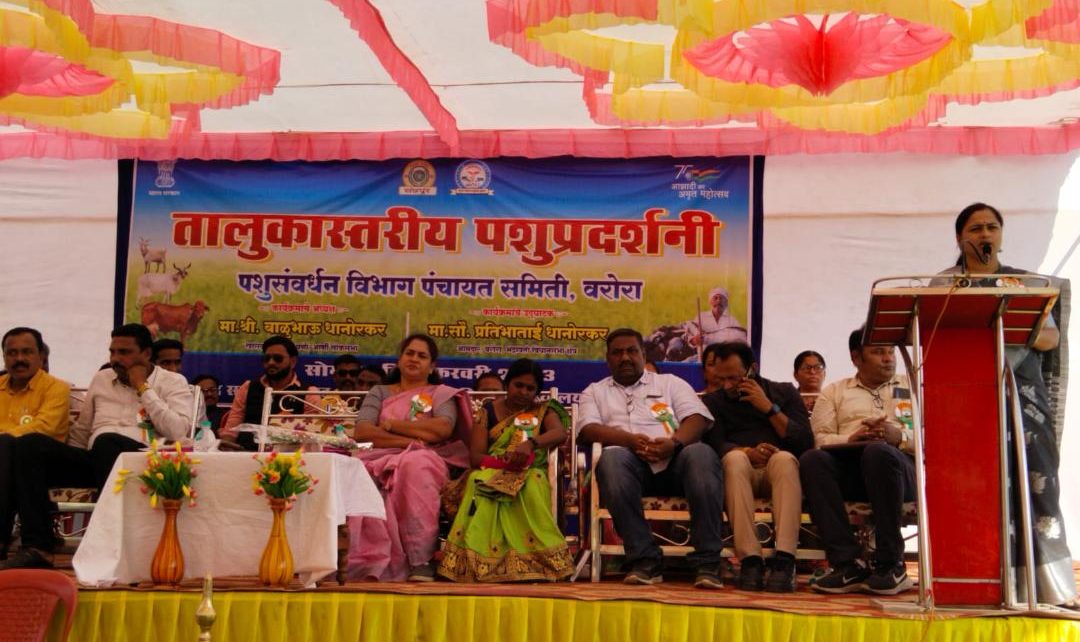 जिल्हा परिषद चंद्रपूर आणि पंचायत समिती वरोराच्या पशुसंवर्धन विभागाच्या वतीने तालुकास्तरीय पशुपक्षी प्रदर्शन आयोजित करण्यात आली होती.