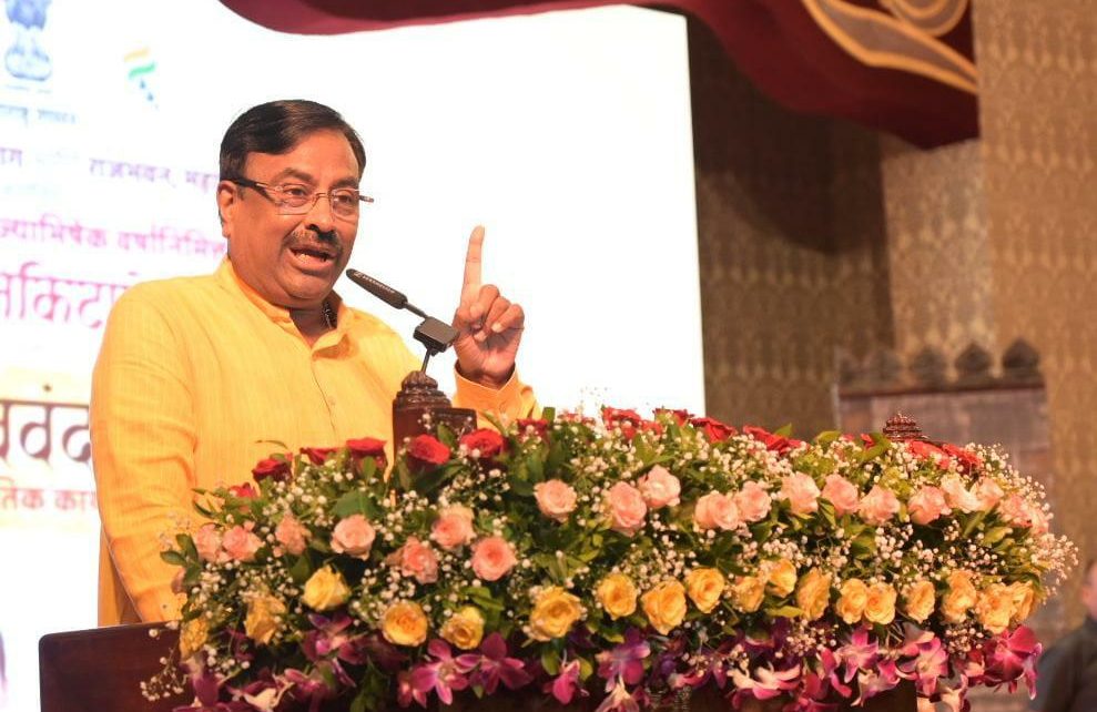 छत्रपती शिवाजी महाराज यांच्या 350 वा राज्याभिषेक 1 हजार 108 मंगलकलशांनी करण्यात आला. मुंबईच्या गेटवे ऑफ इंडियाजवळ 450 शिवकालीन शस्त्राची पूजा करण्याचे सौभाग्य आपल्याला प्राप्त झाल्याचे श्री. मुनगंटीवार म्हणाले. भारताचे नव्हे तर देशविदेशातही शिवराज्याभिषेक सोहळा साजरा करण्यात येतोयअसे मुनगंटीवार यांनी सांगताच राजभवनात टाळ्यांचा कडकडाट झाला. हिंदवी स्वराजांमधील मावळ्यांवरही तिकिट काढण्याचा मनोदय त्यांनी यावेळी व्यक्त केला. छत्रपती शिवाजी महाराजछत्रपती संभाजी महाराजांशी संबंधित अस्मितेशी आपण कधीही तडजोड करणार नाहीअसे त्यांनी यावेळी ठणकावून सांगितले.