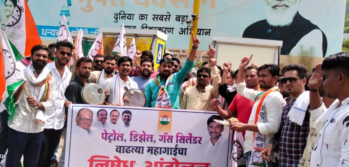 व म्हणून आज राष्ट्रवादी युवक काँग्रेसच्या वतीने झोपलेल्या केंद्र सरकारला जागे करण्याच्या उद्देशाने आदरणीय नरेंद्र मोदीजींच्या फोटोची आरती करून साकडे घालण्यात आले. शहरातील पेट्रोल पंप परिसरात असलेल्या मा. नरेंद्र मोदींच्या फोटो पुढे मोदीजींनी सांगितलेल्या उपदेशाचेच अनुकरण करीत थाळी व ताळी वाजवून फुले वाहत आरती केली व महागाई कमी करण्याचे साकडे घालत पेट्रोल भरणाऱ्यांना प्रसाद म्हणून साखर वाटत अभिनव आंदोलन केले.