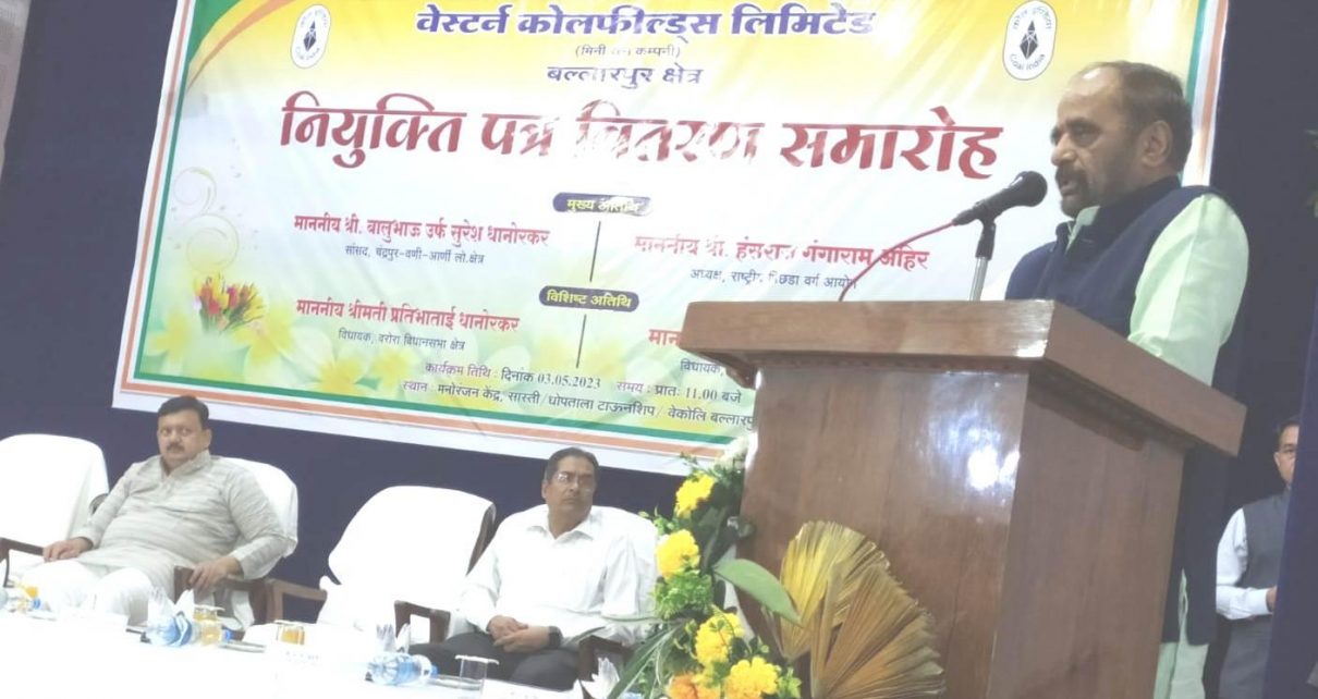 वेकोलि बल्लारपूर क्षेत्राच्या मनोरंजन केंद्र सास्ती (धोपटाळा) येथे दि. 03 में, 2023 रोजी पार पडलेल्या वेकोलि प्रकल्पग्रस्तांना नियुक्तीपत्र प्रदान कार्यक्रमास प्रमुख अतिथी म्हणुन मार्गदर्शन करतांना ते बोलत होते. या कार्यक्रमास खासदार बाळुभाऊ धानोरकर, आमदार सुभाष धोटे, वेकोलि मुख्यालयाचे तांत्रिक निदेशकव्दय श्री. जयप्रकाश व्दिवेदी, श्री. अनिल कुमार सिंह, बल्लारपूर क्षेत्रीय महाप्रबंधक श्री. सव्यसाची डे, भाजपा पदाधिकारी अरुण मस्की, हरिदास झाडे आदी मान्यवर उपस्थित होते.