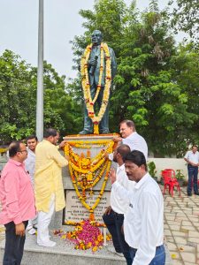 बॅरिस्टर राजाभाऊ खोब्रगडे यांच्या जयंती निमित्त आमदार किशोर जोरगेवार यांनी आजाद बागेजवळ असलेल्या त्यांच्या स्मारकाला माल्यार्पण करुन अभिवादन केले. तसेच यावेळी त्यांनी बॅरिस्टर राजाभाऊ खोब्रागडे भवन येथिल कार्यक्रमात उपस्थित होत बॅरिस्टर राजाभाऊ खोब्रगडे यांच्या प्रतिमेला पुष्पहार अर्पण केला. यावेळी बाळू खोब्रागडे, रोटरी क्लबचे अध्यक्ष अजय जयस्वाल, माजी नगर सेवक बलराम डोडाणी, यंग चांदा ब्रिगेडचे शहर संघटक विश्वजीत शाहा, प्रतिक डोर्लीकर, शालीनी भगत, सुलभ खोब्रागडे आदींची उपस्थिती होती. दरवर्षी प्रमाणे यंदाही बॅरीस्टर राजाभाऊ खोब्रागडे यांच्या जयंती निमित्त बॅरिस्टर राजाभाऊ खोब्रागडे भवन येथे कार्यक्रमाचे आयोजन करण्यात आले होते. यावेळी आमदार किशोर जोरगेवार यांनी बॅरिस्टर राजाभाऊ खोब्रागडे यांच्या प्रतिमेला आणि स्मारकाला माल्यार्पण करुन आदरांजली अर्पण केली. बॅरिस्टर राजाभाऊ यांनी समर्थपणे दलित, पीडित, गरीब ,शेतकरी, कष्टकरी यांच्या उत्थानासाठी संपूर्ण जीवन समर्पित केले. त्यांनी फक्त रस्त्यावर उतरून मोर्चे आंदोलने केले नाहीत तर संसदेत सामान्यांच्या प्रश्नाला वाचा फोडून ते मार्गी लावले. बॅरिस्टर राजाभाऊ खोब्रागडे १८ वर्ष राज्यसभेचे खासदार राहिले. उच्च शिक्षण घेतल्यानंतर समाजासाठी काहीतरी करा हे शब्द त्यांनी मनात पक्के ठेवत स्वतःला भारतरत्न डॉ. बाबासाहेब आंबेडकर यांच्या चळवळीत झोकून दिले. पूढे आंबेडकरी चळवळीचे निष्ठावान नेते म्हणून त्यांची ओळख निर्माण झाली. अशा मानसपुत्र बॅरिस्टर राजाभाऊ खोब्रागडे यांची जयंती साजरी करत असतांना त्यांनी समाजाला दिलेला विचार आत्मसाद केला पाहिजे. बॅरिस्टर राजाभाऊ खोब्रागडे हे आंबेडकरी चळवळीचे एक महत्वाचे शिलेदार होते. ते या चळवळीतील महान योध्दा होते. अशी भावना यावेळी आमदार किशोर जोरगेवार यांनी व्यक्त केली.