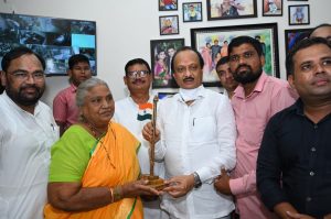 महाराष्ट्र राज्याचे विरोधी पक्ष नेते अजित पवार आज पूरग्रस्त भागाची पाहणी करण्यासाठी चंद्रपूर जिल्ह्याच्या दौऱ्यावर होते. यावेळी त्यांनी आमदार किशोर जोरगेवार यांच्या राजमाता निवासस्थानी भेट देत अम्माची म्हणजेच गंगुबाई जोरगेवार यांची भेट घेतली. यावेळी आमदार किशोर जोरगेवार यांच्या संकल्पनेतून चंद्रपुरात सुरु करण्यात आलेल्या अम्मा का टिफिन या उपक्रमाचीही त्यांनी पाहणी केली. यावेळी सदर उपक्रमाबद्दल त्यांनी संपूर्ण माहिती जाऊन घेतली. सदर उपक्रमाच्या माध्यमातून दररोज १०० टिफिन गरजूंच्या घरी पाठविले जात आहे. विषेश म्हणजे यात सातत्य असने ही मोठी गोष्ट असल्याचे सांगत या उपक्रमाचे विरोधी पक्षनेते अजित पवार यांनी कौतुक केले. यावेळी सदर टिफिनही उघडुन पाहत जेवणाच्या दर्जाचे कौतुक केले. या प्रसंगी अजित पवार यांनी अम्माच्या प्रकृतीची विचारपुस करत यावेळी अम्मानेही मनमोकळेपणाने अजित पवार यांच्याशी बातचित केली. अम्माने गरिबीचे चटके सोसत कष्टाने कुटुंबाला सक्षम केले आहे. अम्माने आपल्या टोपल्या विकण्याचा व्यवसाय आजही सुरुच ठेवला आहे. याचेही अजित पवार यांनी कौतुक केले. यावेळी आमदार किशोर जोरगेवार यांनी शाल, पुष्पमाला, बांबू निर्मित तिरंगा ध्वज, संविधान पुस्तिका, ग्रामगीता, देत अजित पवार यांचे स्वागत केले. या प्रसंगी यंग चांदा ब्रिगेडचे महानगर जिल्हाध्यक्ष पंकज गुप्ता, महिला शहर संघटिका वंदना हातगावकर, युथ शहराध्यक्ष कलाकार मल्लारप, युवा नेते अमोल शेंडे अल्पसंख्यांक विभागाचे शहराध्यक्ष सलिम शेख, अल्पसंख्याक युथ शहराध्यक्ष राशेद हुसेन, बंगाली समाज शहराध्यक्ष विश्वजित शाहा, करणसिंह बैस, राम जंगम, नकुल वासमवार, मुन्ना जोगी, प्रविन पिंपळशेंडे, राम मेंढे, नितिन शाहा, विक्की रेगंटीवार, गौरव जोरगेवार, दिनेश इंगळे, अल्पसंख्याक विभागाच्या महिला शहराध्यक्ष कौसर खान, सायली येरणे, आशा देशमुख, विमल कातकर, शमा काजी, अस्मिता डोणारकर, वंदना हजारे यांच्यासह यंग चांदा ब्रिगेडच्या कार्यकर्त्यांची मोठ्या संख्येने उपस्थिती होती.