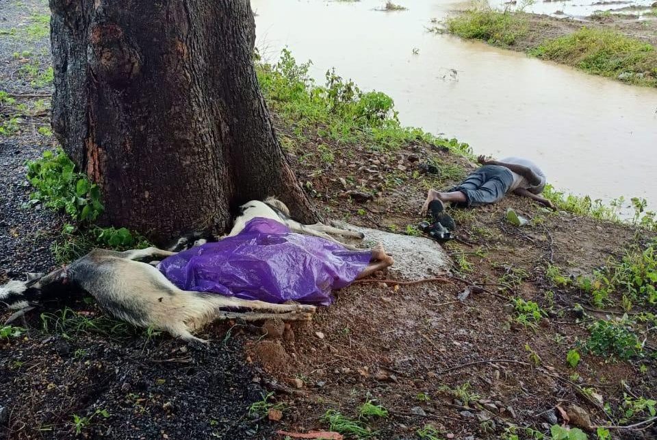 तालुक्यात खरीपाचा हंगाम सुरू असून धानाची पेरणी आटोपल्या जात आहे. शेतात प—हाटी आणि तूर लावण्यासाठी बोंडाळा खुर्द येथील विलास नागापूरे आणि नामदेव पोरटे हे आपआपल्या पत्नीसह सकाळी शेतात गेले होते.दोघांचे शेत लागूनच असल्याने शेतीकाम सुरूच होते. गुरूवारी दुपारी अडीच वाजताच्या दरम्यान वातावरणात बदल झाला आणि वीजेच्या कडकडाटासह मुसळधार पावसाला सुरूवात झाली.पावसापासून संरक्षण करण्यासाठी शेतातील कडूलिंबाच्या झाडाखाली या चौघांनी आश्रय घेतला.त्याच वेळेस कडाडलेली वीज कडूलिंबाच्या झाडावर कोसळली.त्यात भाजल्या गेल्याने विलास केशव नागापूरे आणि गयाबाई नामदेव पोरटे यांचा जागीच मृत्यू झाला.तर ताराबाई विलास नागापूरे आणि नामदेव तानू पोरटे हे गंभीर जखमी झाले.त्यांच्या सोबत असलेली दोन बकरे सुदधा वीजेच्या धक्क्याने मृत्यूमुखी पडली.हे दोन्ही बकरे विलास नागापूरे यांची होती. बोंडाळा खुर्द येथील या दुर्दैवी घटने मुळे गावात हळहळ आणि शोक व्यक्त् केल्या जात आहे. घटनेची माहीती मिळताच बेंबाळ पोलिस चोकीचे पोलिस उपनिरिक्षक प्रशांत ठवरे,मूल येथील नायब तहसिलदार यशवंत पवार आणि बोडाळा खुर्दचे सरपंच जालिंद्र बांगरे यांनी भेट देवून घटनास्थळाचा पंचनामा केला. यात गंभीर जखमी वर मूल येथील उपजिल्हा रूग्णालयात दाखल करण्यात आले आहे. मृतकांवर उपजिल्हा रूग्णालयात शवविच्छेदन करण्यात आले.