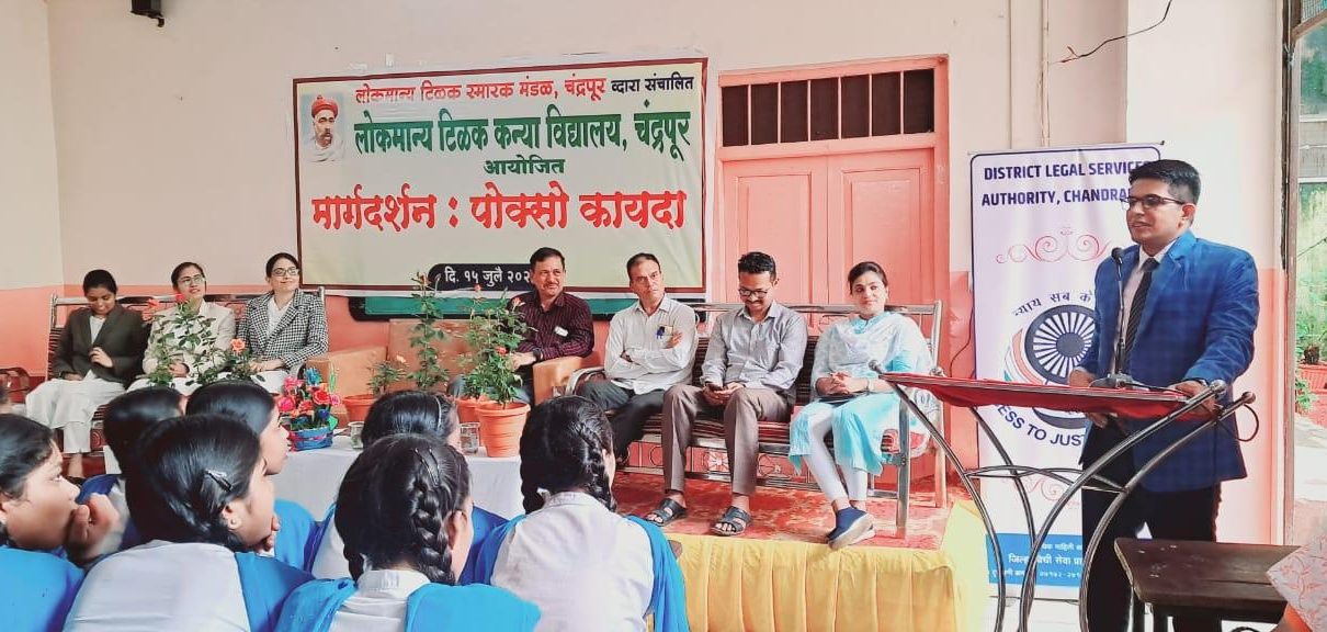 चंद्रपूर  : जिल्हा विधी सेवा प्राधिकरणचंद्रपूर मार्फत प्रमुख जिल्हा व सत्र न्यायाधीश समृद्धी एस भीष्म यांच्या मार्गदर्शनात  दि. 15 जुलै रोजी लोकमान्य टिळक कन्या विद्यालयचंद्रपूर येथे कायदेविषयक शिबिराचे आयोजन करण्यात आले होते.  या कार्यक्रमात उपस्थित मुलींना कायदेविषयक माहिती देण्यात आली.